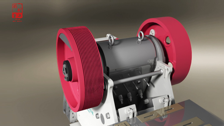CJ系列顎式破碎機工作時采用的是曲動擠壓型的工作方式,電動機驅動皮帶輪傳動,通過偏心軸使動顎前后上下運動。當動顎上升時,肘板與動顎間夾角變大,從而推動動顎板向固定顎板接近,同時物料被壓碎或劈碎,達到破碎的目的;當動顎下行時,肘板與動顎夾角變小,動顎板在拉桿和彈簧的作用下,離開固定顎板,此時已破碎物料從破碎腔下口排出。隨著電動機連續(xù)轉動,破碎機動顎作周期運動壓碎和排出物料,實現連續(xù)生產。