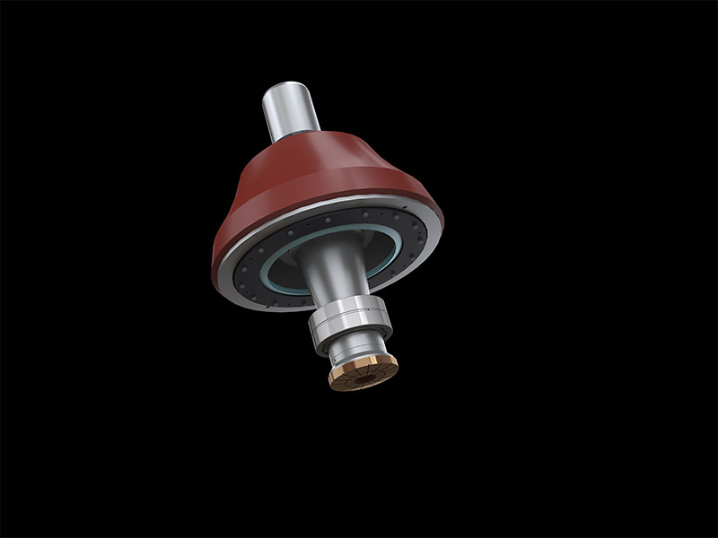 RC系列單缸液壓圓錐式破碎機(jī)工作過程中,電動機(jī)通過傳動裝置帶動偏心套旋轉(zhuǎn),動錐在偏心軸套的迫動下做旋轉(zhuǎn)擺動,動錐靠近定錐的區(qū)段即成為破碎腔,物料受到動錐和定錐的多次擠壓和撞擊而破碎。動錐離開該區(qū)段時(shí),該處已破碎至要求粒度的物料在自身重力作用下下落,從錐底排出。排料口的大小需要靠底部一個(gè)液壓缸的升降來調(diào)節(jié)。
