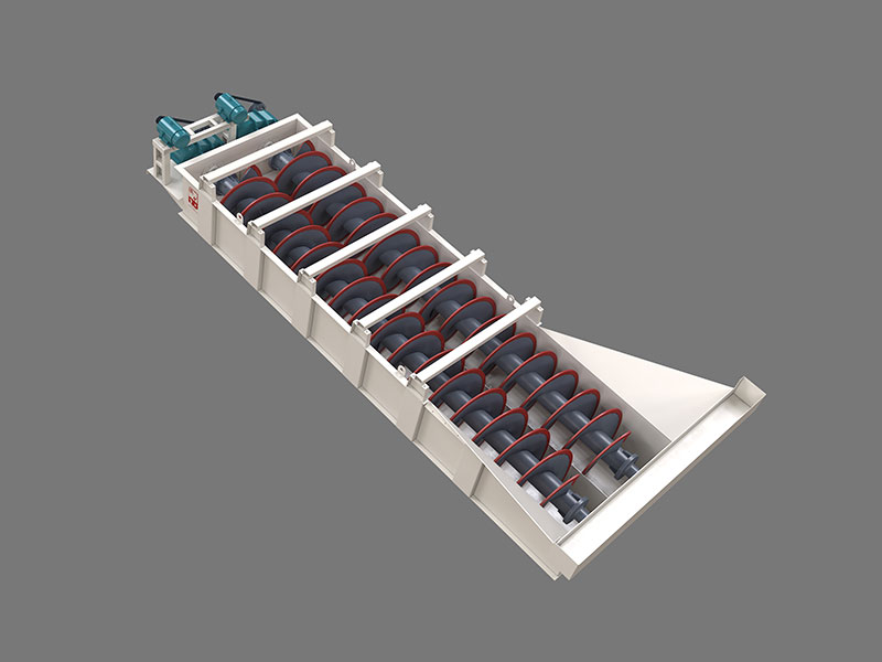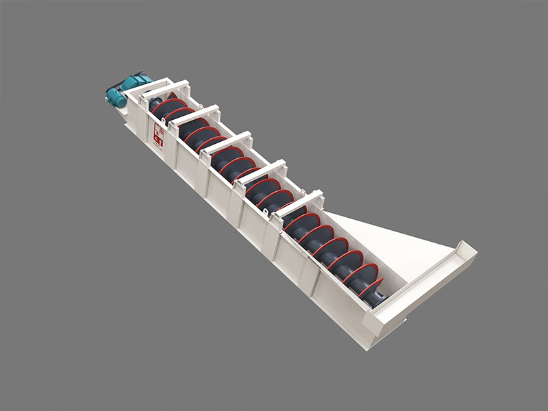 LX砂石洗選機系中螺旋洗砂機利用物料不同粒度和密度的顆粒在流體中具有不同的沉降速度的特性——粒度細、密度小的顆粒沉降速度慢;而粒度大、密度大的顆粒沉降速度快,將粉塵和雜質(zhì)與砂分離開來。并在螺旋片的均勻攪動下,達到濾水去雜、提升輸送的目的。